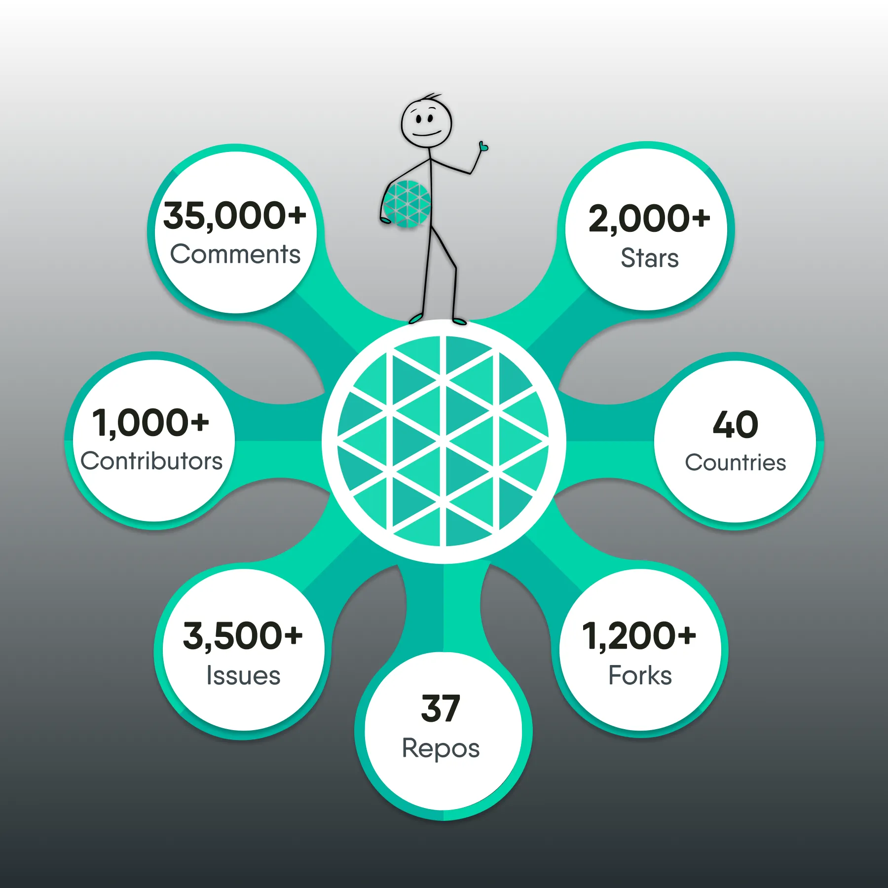 Contributor statistics are tallied across all of the (currently nearly 30) repositories under the Meshery GitHub organization. The most popular repository is meshery/meshery, however, there are many supporting components that live in sibling repositories, which receive active contribution. A contributor is an individual who made a review, comment, commit or created PR or issue in Meshery's code base. As of this blog post, over 500 code committers have contributed to Meshery.